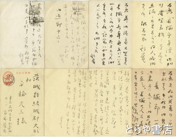 • 解説 毛筆住所氏名自筆1枚・住所氏名ゴム印毛筆書き3枚・ゴム印ペン書き4枚 長塚節関連6枚