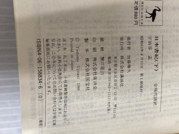 日本書紀(下)全現代語訳: 全現代語訳 (講談社学術文庫 834) 講談社