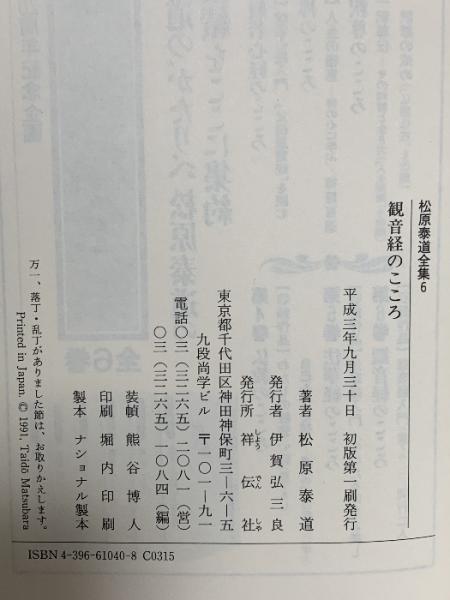 松原泰道全集 6 観音経のこころ 祥伝社 松原 泰道