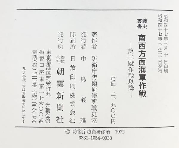 戦史叢書(54)南西方面海軍作戦 第2段作戦以降 朝雲新聞社 防衛庁防衛研修所戦史室:著 昭和47年