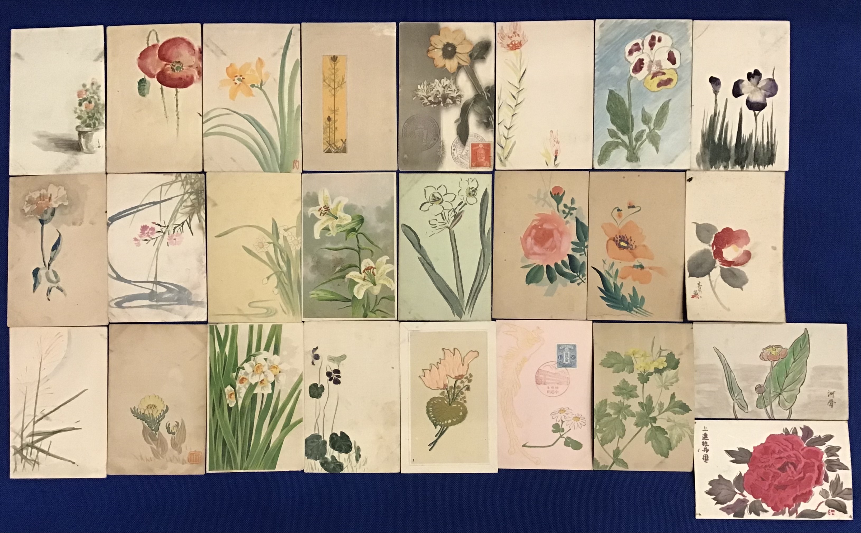 古絵葉書/ポストカード 花の図案(一部手描き含む)25枚一括 (内2枚宛名面に書き込みあり)