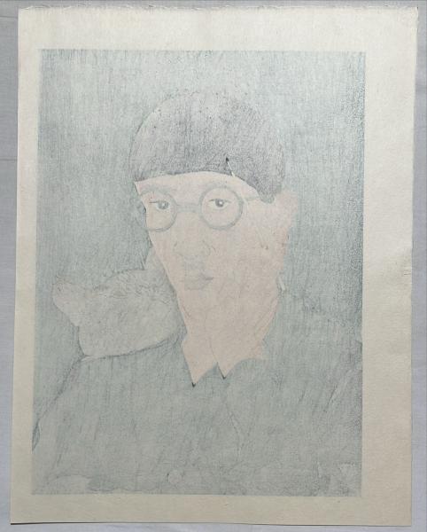 藤田嗣治木版画 【自画像】