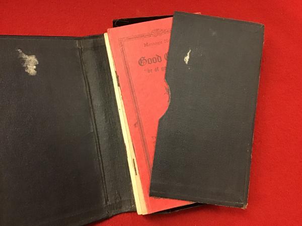• 解説 英文【刊行年不詳】革ケース一面ヤブレ(完全断絶)、ハガシ痕 本体経年ヤケシミ