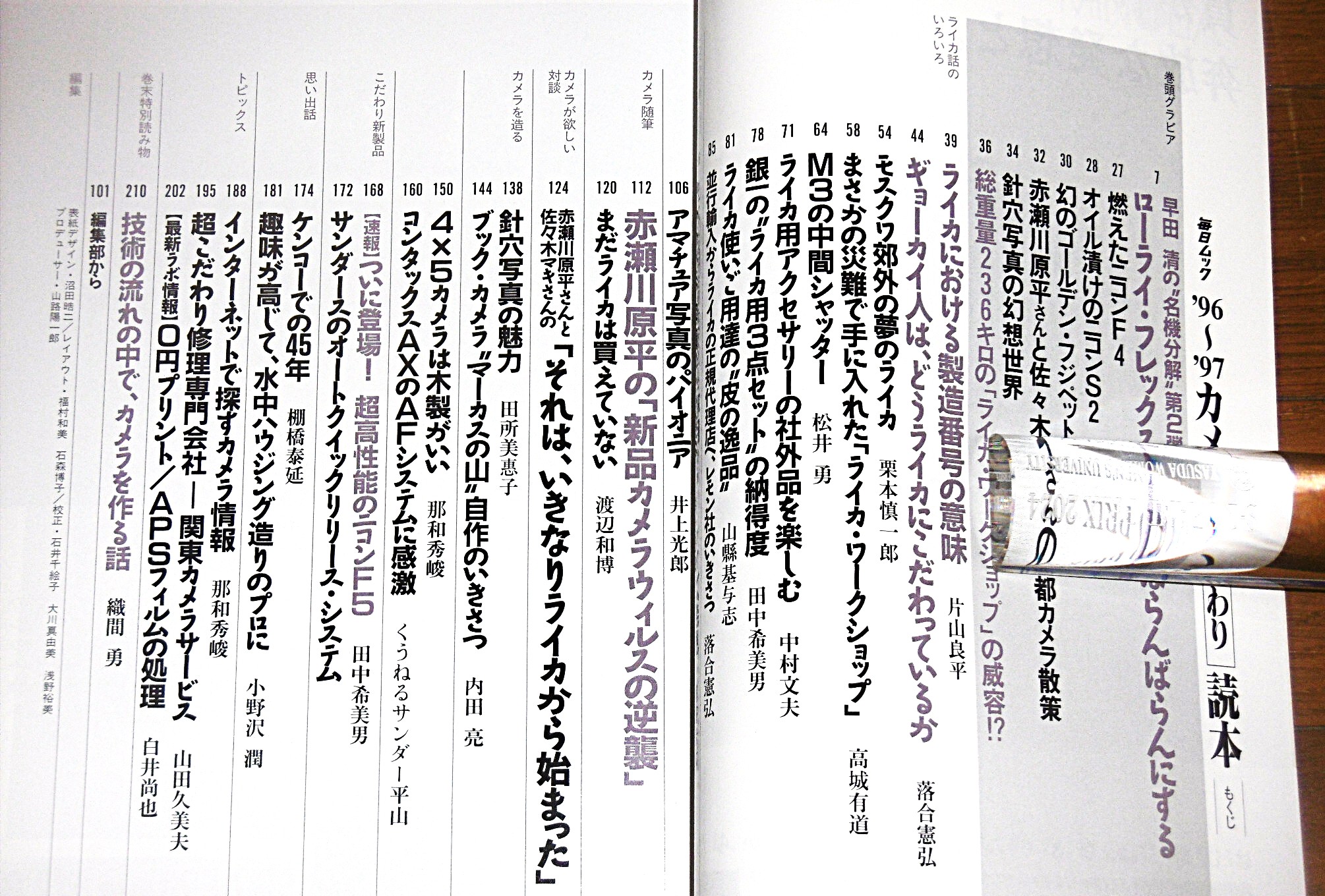 ’96~’97 カメラこだわり読本 「ライカ話のいろいろ、ローライ・フレックス2.8Fを分解、燃えたニコンF4・ニコンS2のオイル漬け…など、話題満載。」 毎日ムック