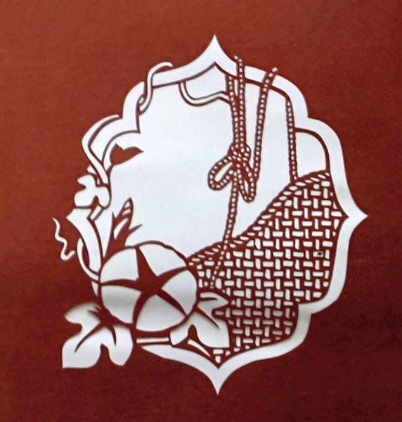伊勢型紙 手彫り 朝顔 アサガオ 籠 アート 伝統和紙工芸 貼り絵 切り絵 昭和レトロ インテリア〇和本古書古文書