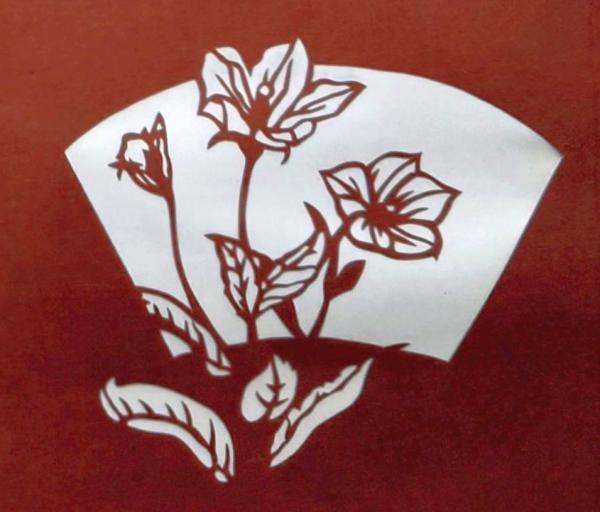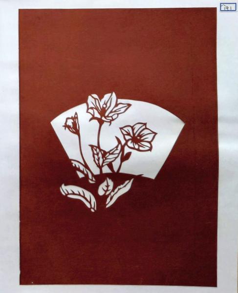 D26020191〇伊勢型紙 手彫り 桔梗の花 秋の風物詩 アート 伝統和紙工芸 貼り絵 切り絵 昭和レトロ インテリア〇和本古書古文書