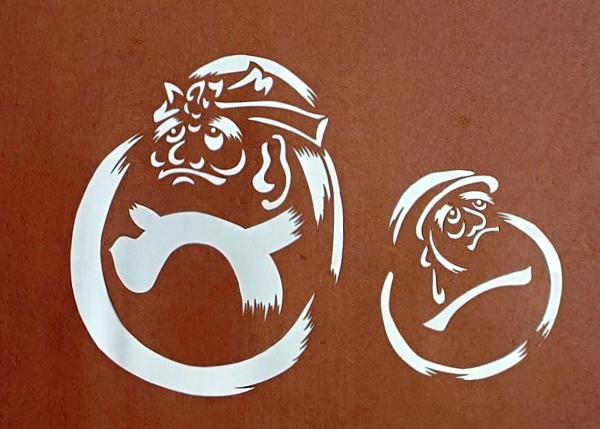 • 解説 D26020197〇伊勢型紙 手彫り ハチマキダルマ 2体 アート 伝統和紙工芸 貼り絵 切り絵 昭和レトロ インテリア〇和本古書古文書