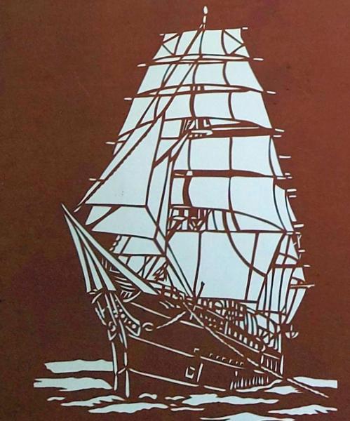 伊勢型紙 手彫り 帆船 アート 伝統和紙工芸 貼り絵 切り絵 昭和レトロ インテリア〇和本古書古文書
