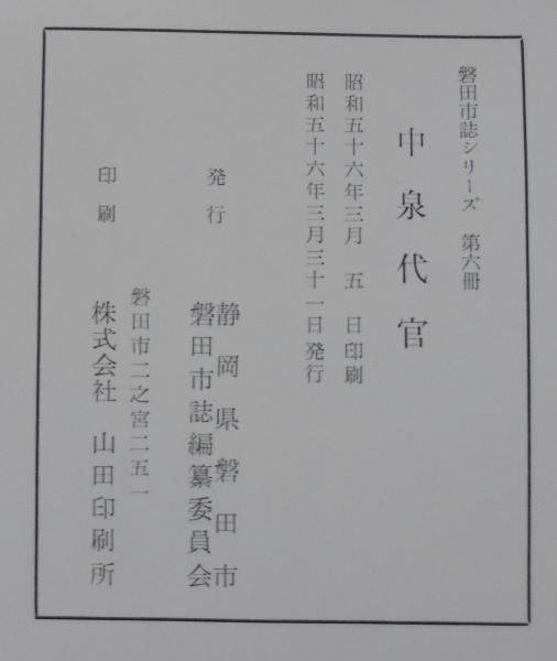 中泉代官 <磐田市誌シリーズ 第6冊>