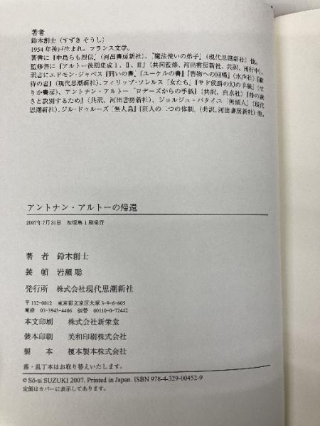 アントナン・アルトーの帰還 現代思潮新社 鈴木創士