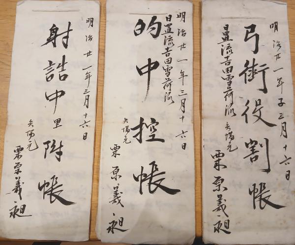※明治廿一年弓術役割表&射詰中里附帳&的中控帳等 日置流吉田雪荷派 矢場元栗原義昶 東茨城郡手堤村(小美玉市)永井一正 所持鈴木賢助