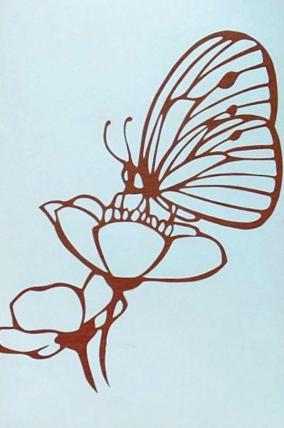 • 解説 D26020257〇伊勢型紙 手彫り 花の蜜を吸う蝶 アート 伝統和紙工芸 貼り絵 切り絵 昭和レトロ インテリア〇和本古書古文書