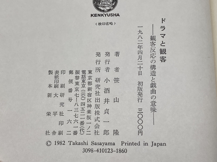 ドラマと観客  笹山隆 研究社