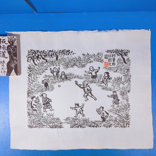 川上澄生木版画『村童野球戯之圖』重要無形文化財越前奉書岩野市兵衛(人間国宝)手漉和紙