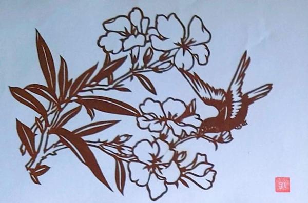 伊勢型紙 手彫り 小鳥と花 アート 伝統和紙工芸 貼り絵 切り絵 昭和レトロ インテリア〇和本古書古文書