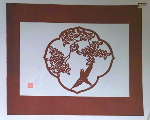 D26020278〇伊勢型紙 手彫り 小鳥 草木花 アート 伝統和紙工芸 貼り絵 切り絵 昭和レトロ インテリア〇和本古書古文書
