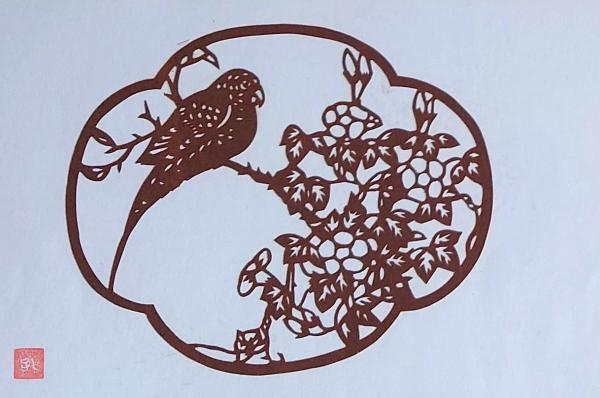 伊勢型紙 手彫り 小鳥 草木花 アート 伝統和紙工芸 貼り絵 切り絵 昭和レトロ インテリア〇和本古書古文書