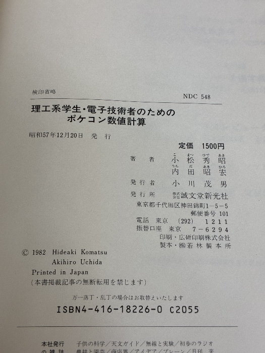 理工系学生・電子技術者のためのポケコン数値計算 (でんてんシリーズ) 誠文堂新光社 小松 秀昭