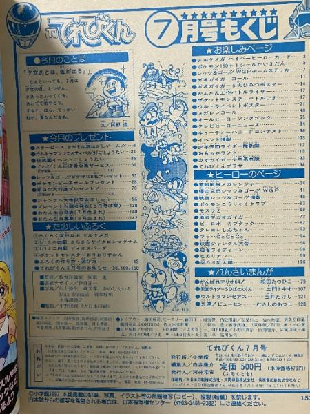 1 てれびくん 1997年7月 第二十二巻 第七号 小学館 メガレンジャー ポケモン大進撃 カブタック
