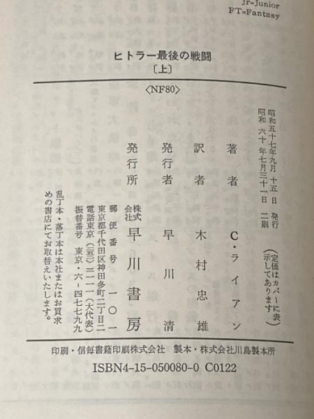 ※イタミ有 ヒトラー最後の戦闘〈上・下〉 (1982年) (ハヤカワ文庫―NF) コーネリアス・ライアン