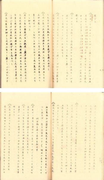 • 著者 東武竹林庵・編、〈1総論、2通機二十則の解、3六十甲不吉凶の事、4日輪を候て吉凶を知る事、5月輪を候ひて吉凶を知る事、6雲の気を見て年の吉凶を知る事、7虹を候見て吉凶を知る事、8電気候風雨知る事、9雲気を見て雨風の吉凶を知る事、10雨降り出時により降り晴るゝを知る事、11毎月定て風雨吹き降る日の事、12煙気を見て吉凶を知る事、13四季の気を見て吉凶を知る事、14軍中において雲煙の吉凶を知る事、15五音の気を以て吉凶を志る事、16易数を以毎日の米穀相場高下をうらなふ事、17算術秘伝、18天文風雨米穀高低の伝、19潮汐の満干の事〉