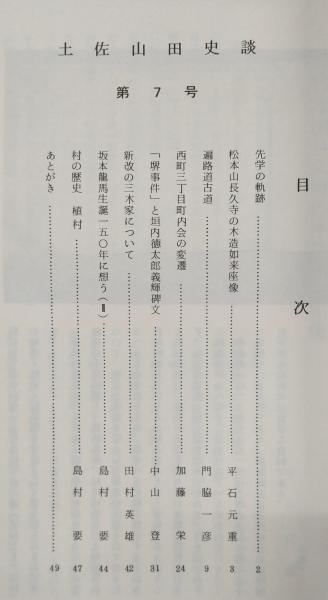 土佐山田史談 第7号 松本山長久寺の木造如来座像…ほか