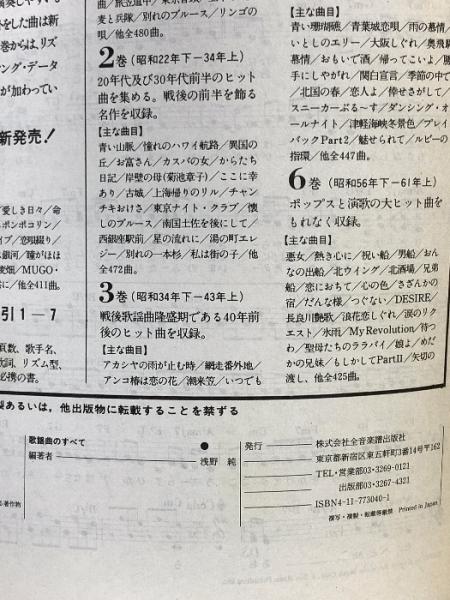 歌謡曲のすべて ベスト1064 1996年度改訂版 プロフェショナル・ユース 全音楽譜出版社