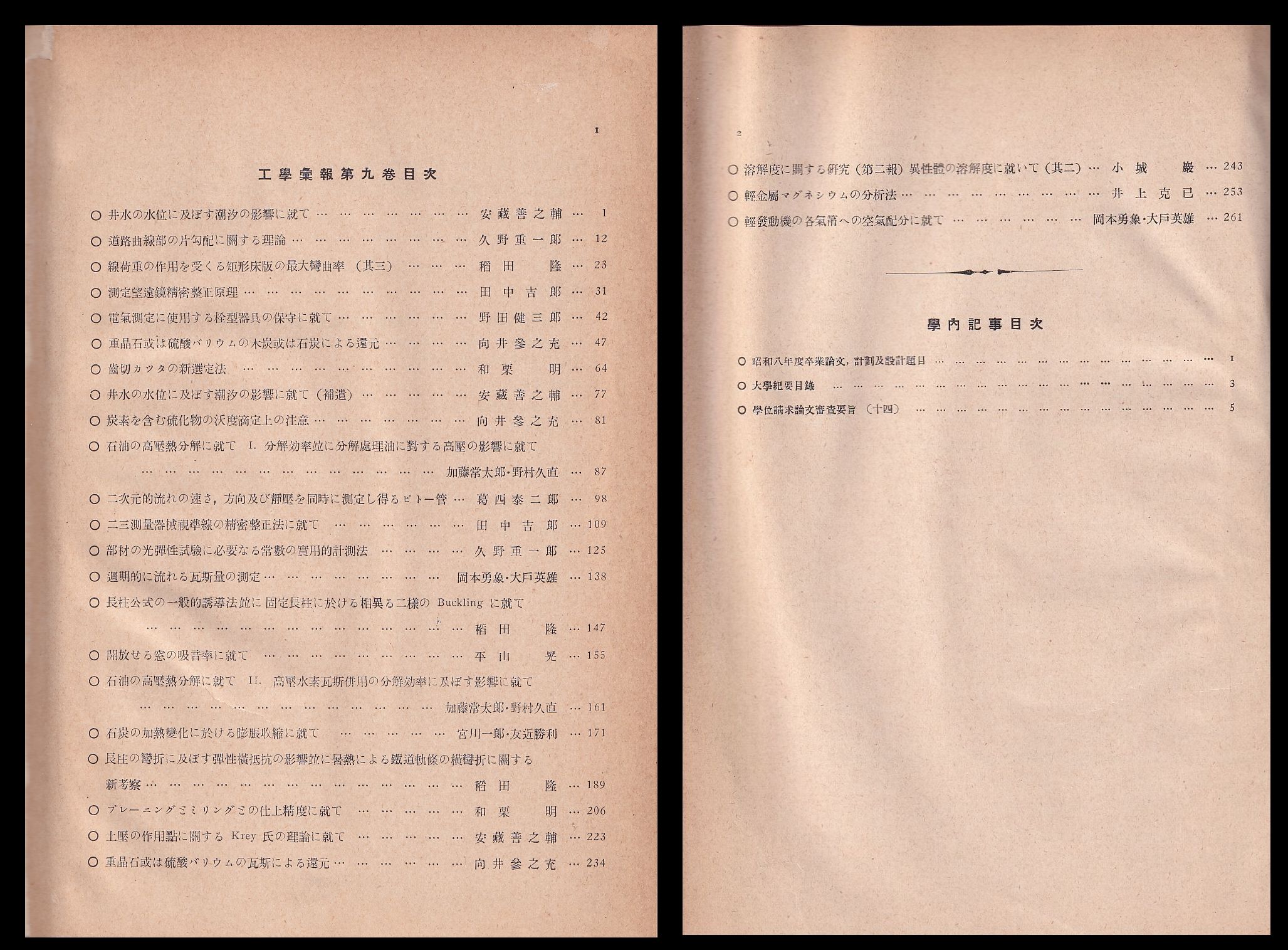 九州帝國大學工學彙報 第九巻 合本