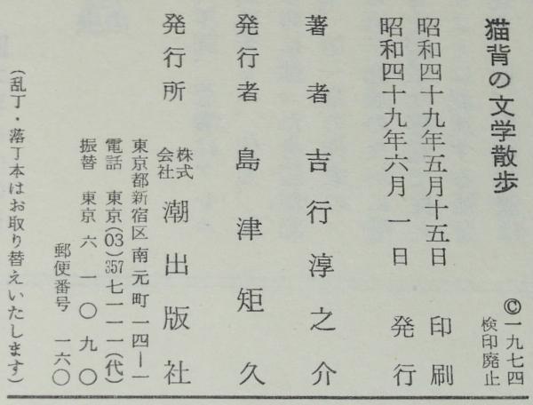 • 解説 吉行淳之介対談集 猫背の文学散歩 潮出版社 昭和49年6月発行 四六判ハードカバー帯付.