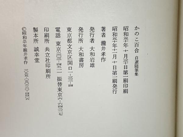 自選随筆集 かのこ百合 大和書房 瀧井孝作