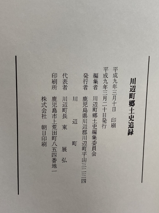 川辺町郷土史追録 川辺町(鹿児島県)  平成9