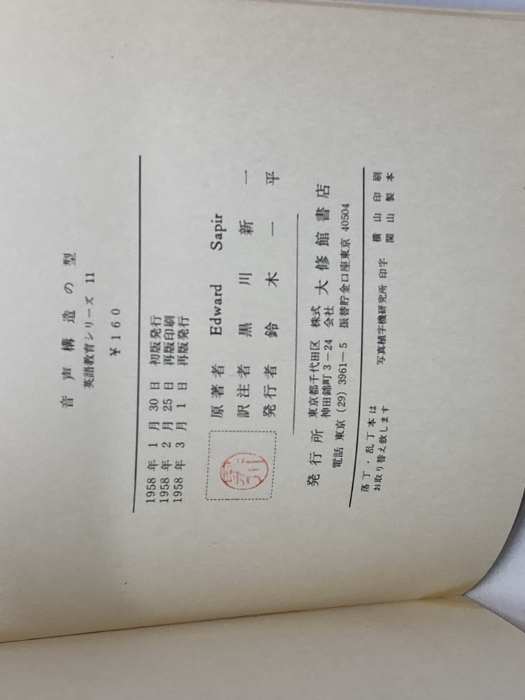 音声構造の型(英語教育シリーズ11) サピア 大修館