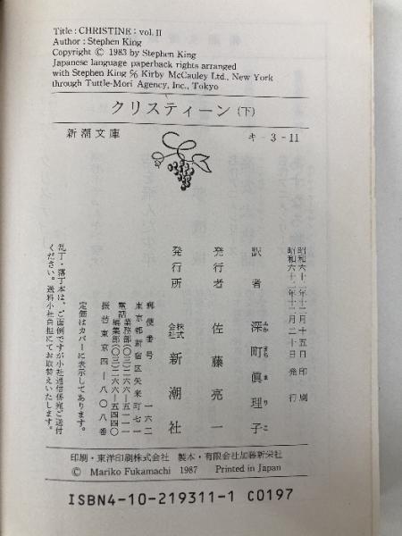 クリスティーン 下巻 (新潮文庫 キ 3-11) 新潮社 スティーヴン キング