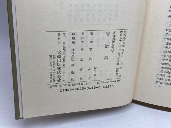 碧巖集 仏典講座 29 平田高士 大蔵出版