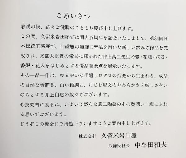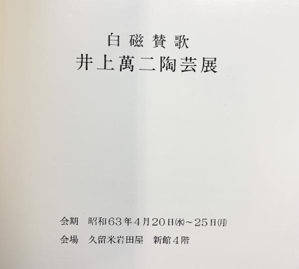 【図録】白磁讃歌-井上萬二陶芸展-昭和63年 久留米岩田屋