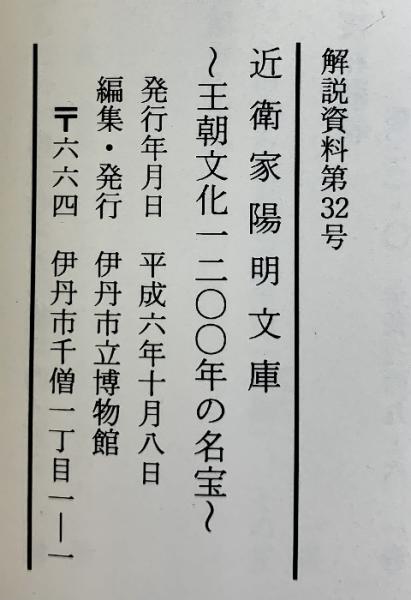 【図録】近衛家陽明文庫-王朝文化1200年の名宝- 伊丹市立博物館 1994年