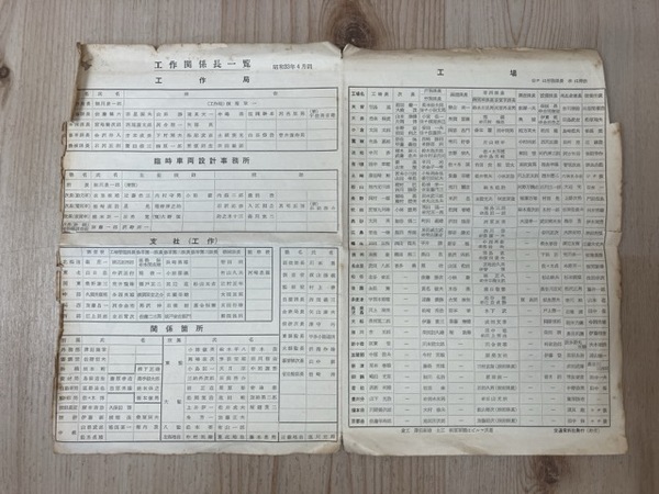 詳細不明鉄道資料/ 工作関係長・工場職場長一覧図