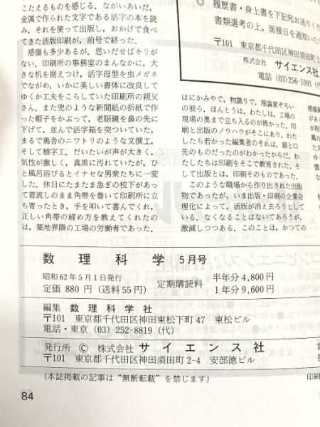9 数理科学 1987年5月号 特集 方程式の物理イメージ