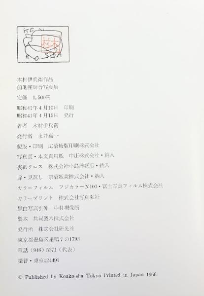 木村伊兵衛作品『前進座舞台写真集』発行:株式会社研光社 昭和41年 著:木村伊兵衛