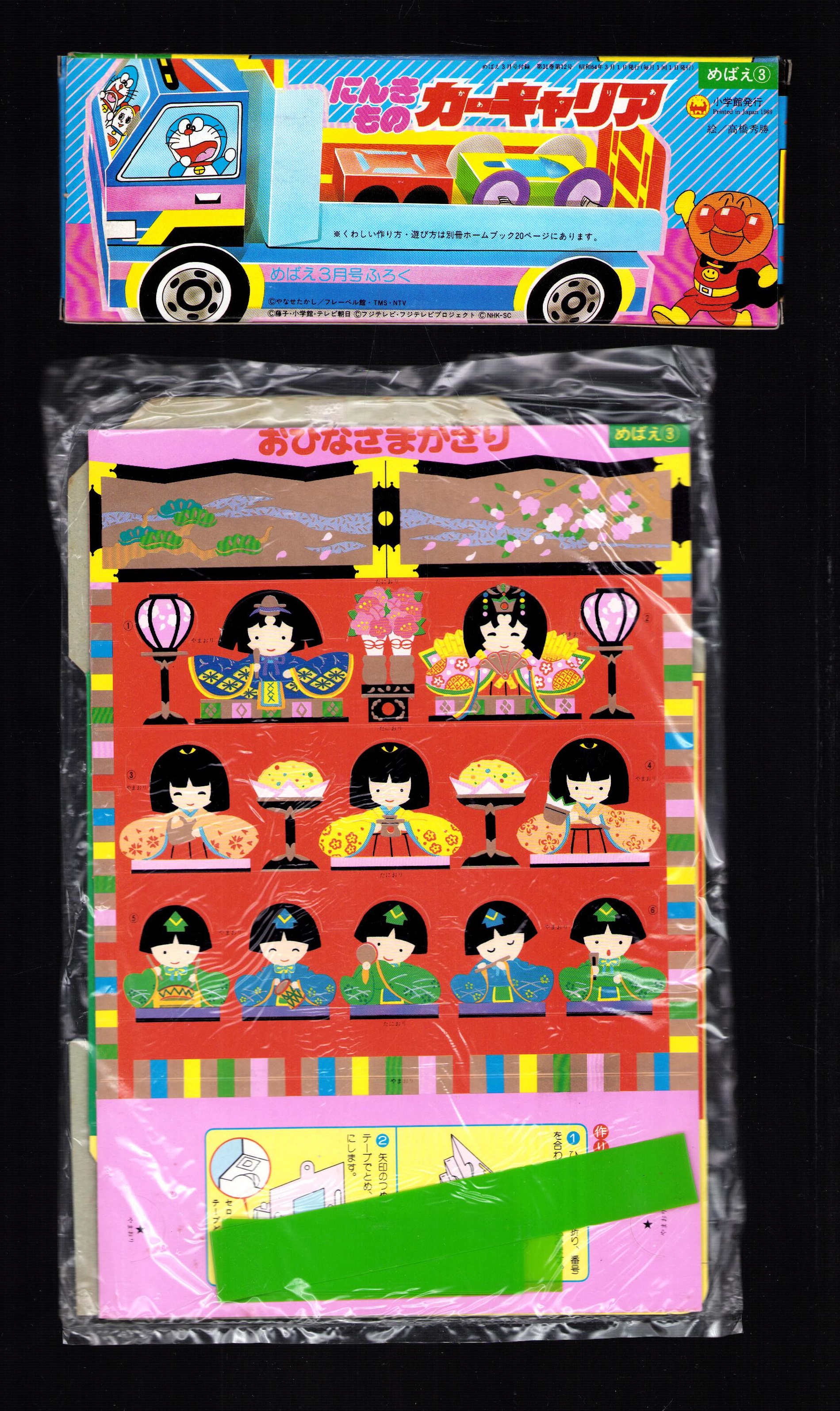 (付録)仮面ライダーブラックRXおめん/にこぷんかばん/おひなさまかざり他 4点一括 -めばえ平成1年3月号付録-