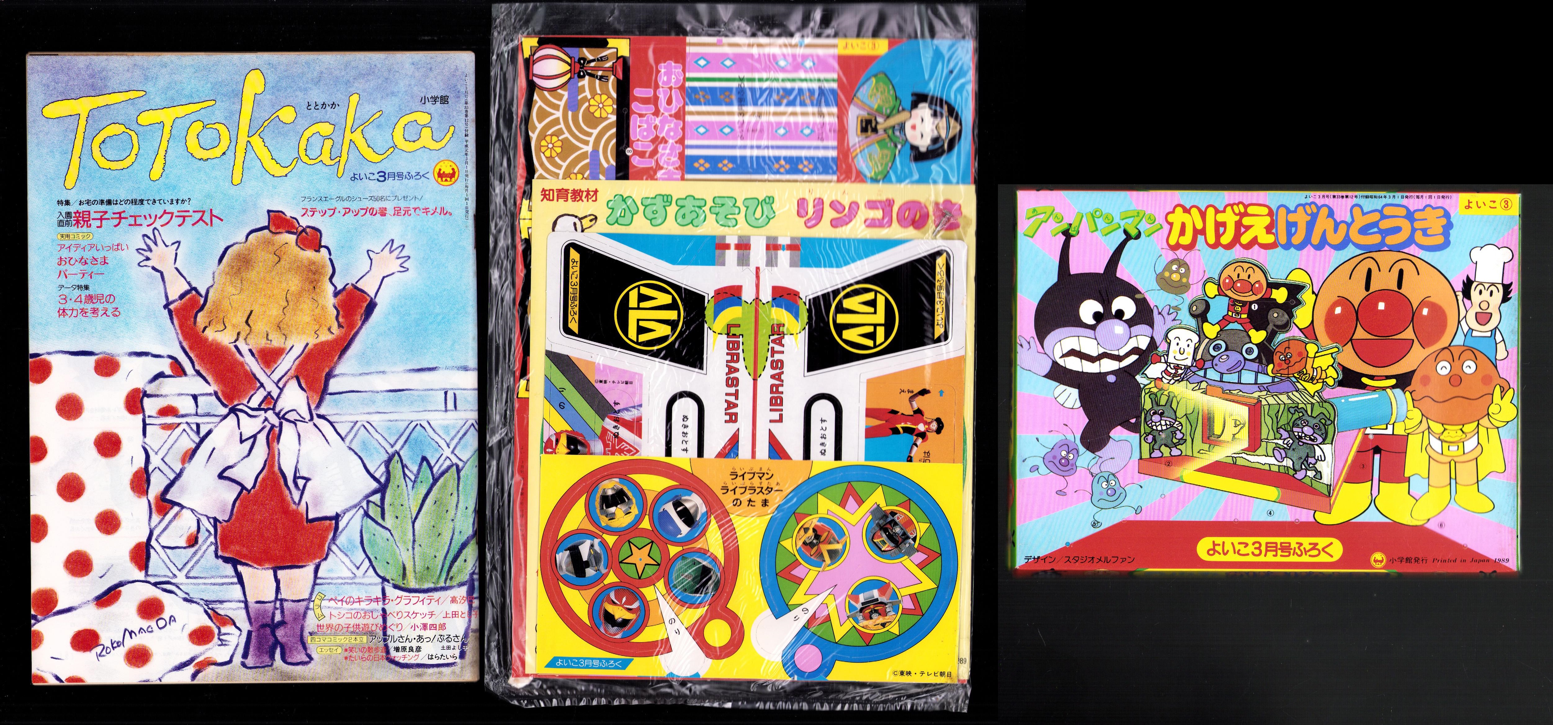 (付録)ライブマン ライブラスター/アンパンマンかげえげんとうき/おひなさまこばこ他 5点一括 -よいこ平成1年3月号付録-