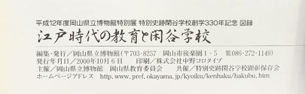 【図録】江戸時代の教育と閑谷学校 岡山県立博物館平成12年度特別展 特別史跡閑谷学校創学330年記念 2000年 発行:岡山県立博物館