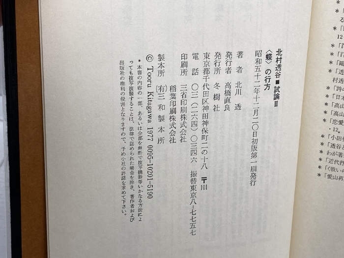 蝶〉の行方 北村透谷・試論3 北川透 冬樹社