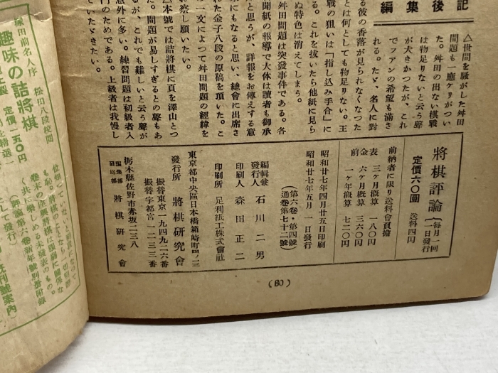 将棋評論 第6巻第4号 昭和17年5月 将棋研究會