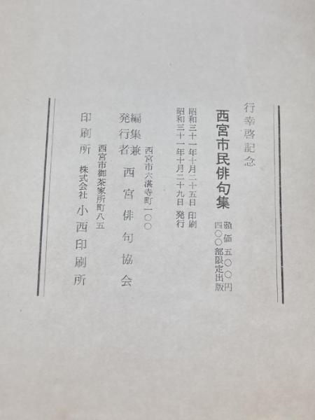 西宮市民俳句集 行幸啓記念 昭和31年 西宮俳句協会