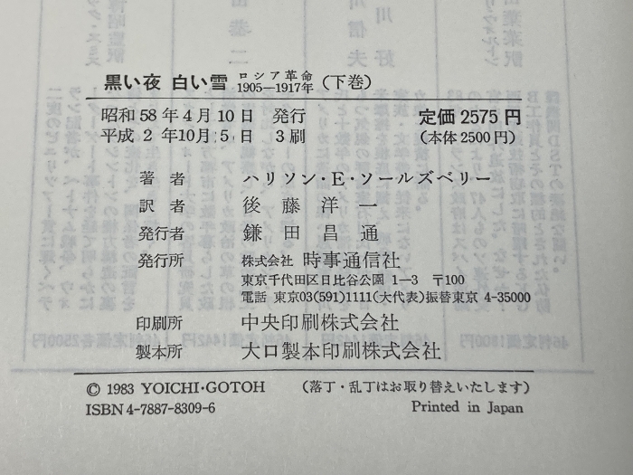 黒い夜 白い雪 : ロシア革命1905-1917年 上下 全2冊揃 ハリソン・E.ソールズベリー 著 時事通信社