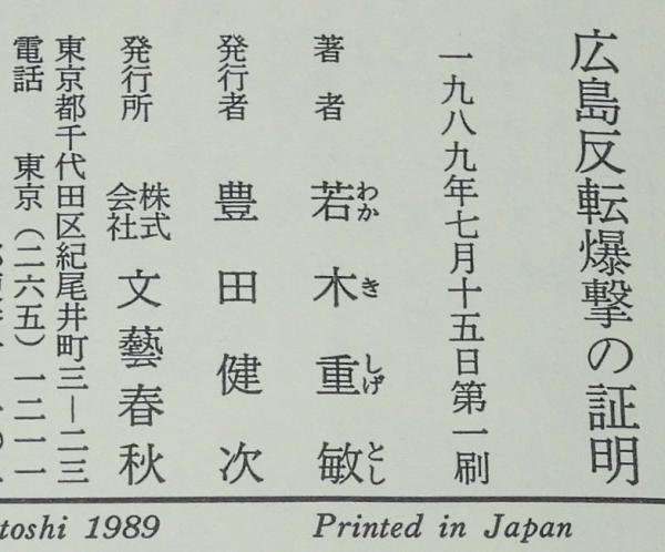 • 解説 広島反転爆撃の証明 若木重敏 文藝春秋 1989年7月第1刷 四六判ハードカバー帯付.