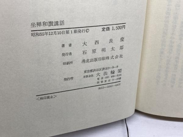 坐禅和讃講話 大西良慶 大法輪閣