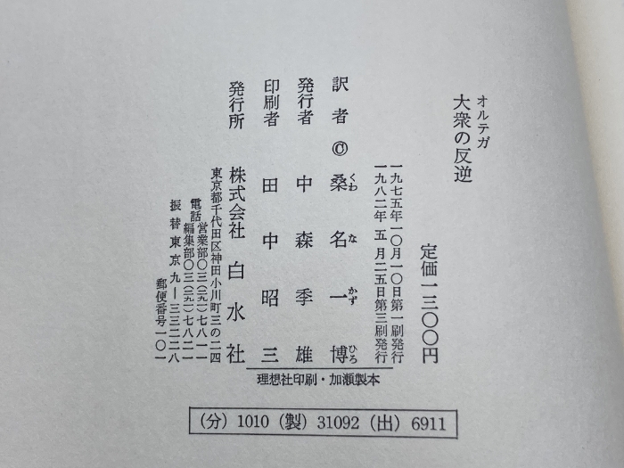 オルテガ 大衆の反逆 桑名一博訳 白水社