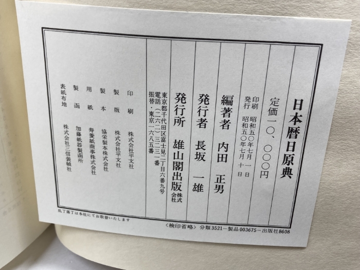 日本暦日原典 内田正男 雄山閣 昭和50